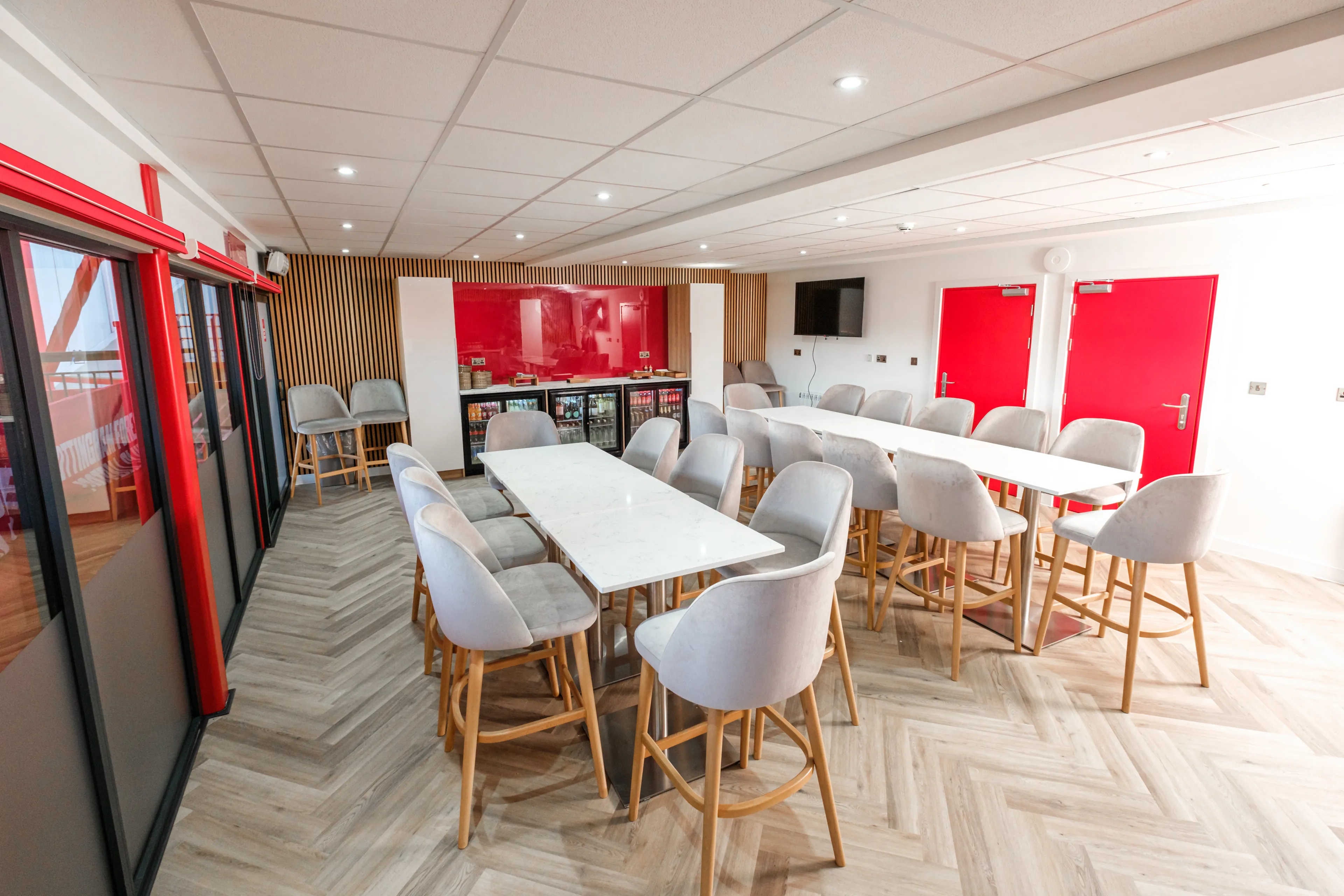 Each Corner Suite offers a premium; self-contained space designed for flexibility and comfort. With modern interiors and panoramic pitch views, these suites provide the perfect setting for business meetings, private celebrations, smaller events, and DDR packages.